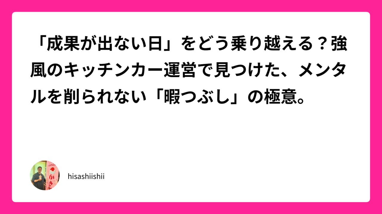 結局、凍えながら数時間を過ごした私の手元に残ったのは、わずか数千円の売上でした。 「費やした時間と労力」に対して、返ってきた「数字」が見合わない。そんなとき、私たちの心はポッキリと折れそうになります。