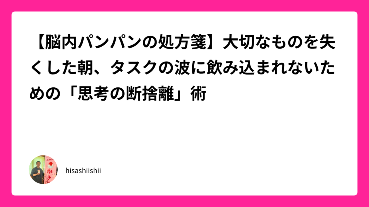 【脳内パンパンの処方箋】大切なものを失くした朝、タスクの波に飲み込まれないための「思考の断捨離」術