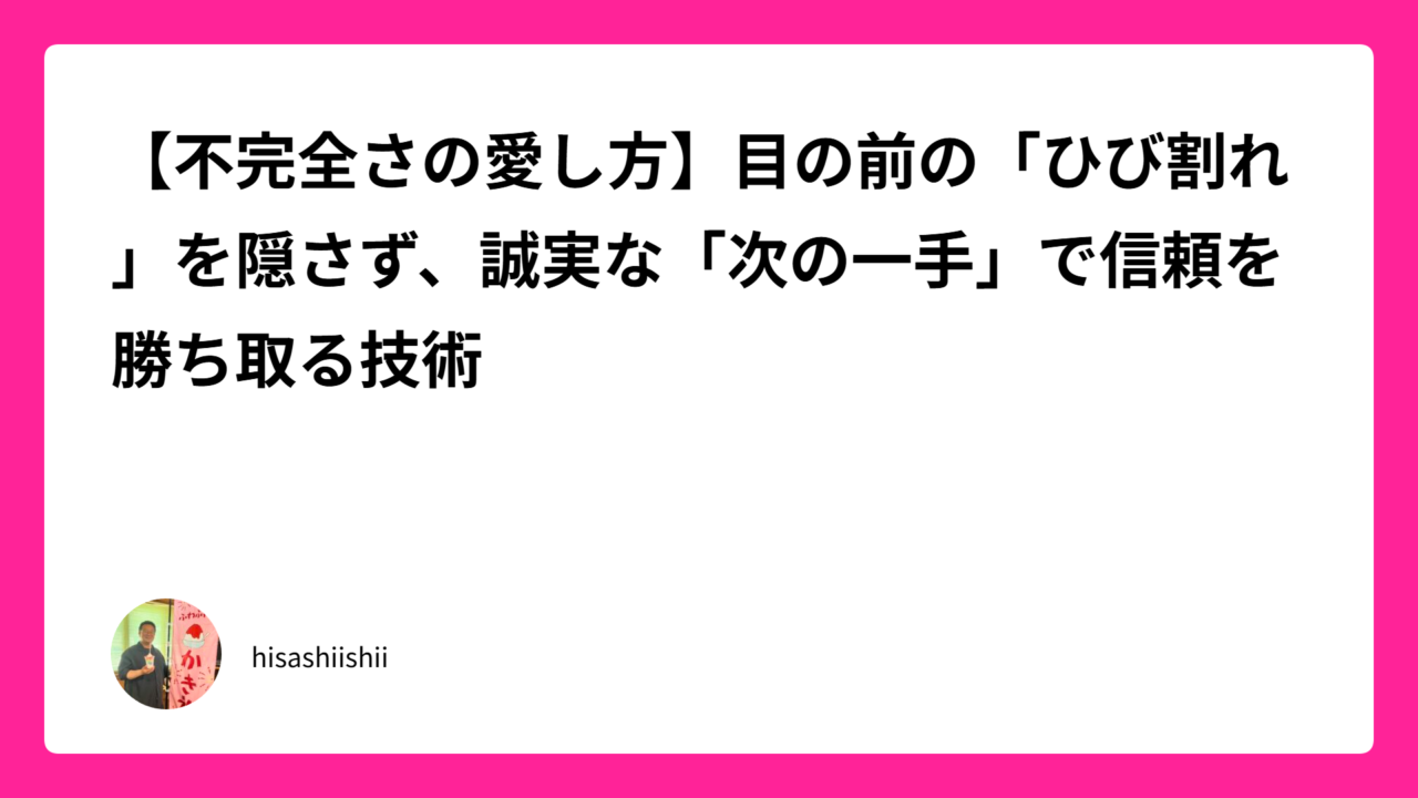 今日は、目の前の欠陥や組織の停滞という「ひび割れ」に直面したとき、どう心を整え、誠実なリーダーシップを発揮するかについて、私のライフログから知恵を絞り出します。