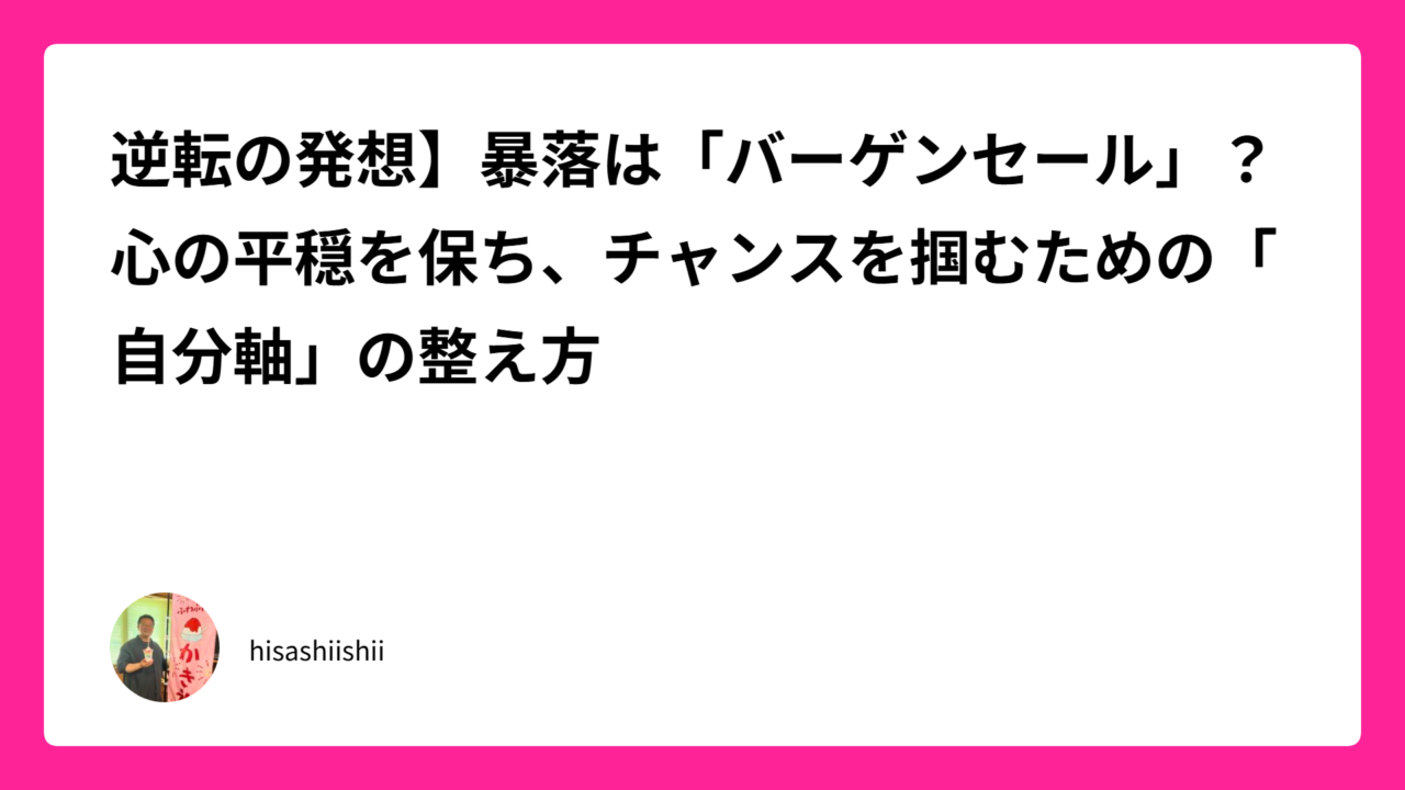今日は、世界経済が揺れる中で淡々と「バーゲンセール」を楽しむ強靭なメンタルと、家族の小さなSOSを最優先するバランス感覚について、私のライフログから導き出した「知恵」を共有します。