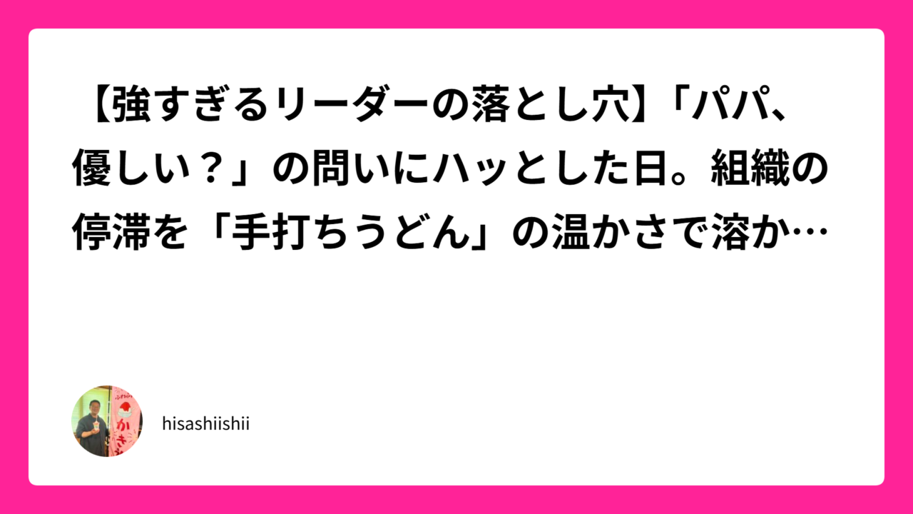 【強すぎるリーダーの落とし穴】「パパ、優しい?」の問いにハッとした日。組織の停滞を「手打ちうどん」の温かさで溶かすヒント