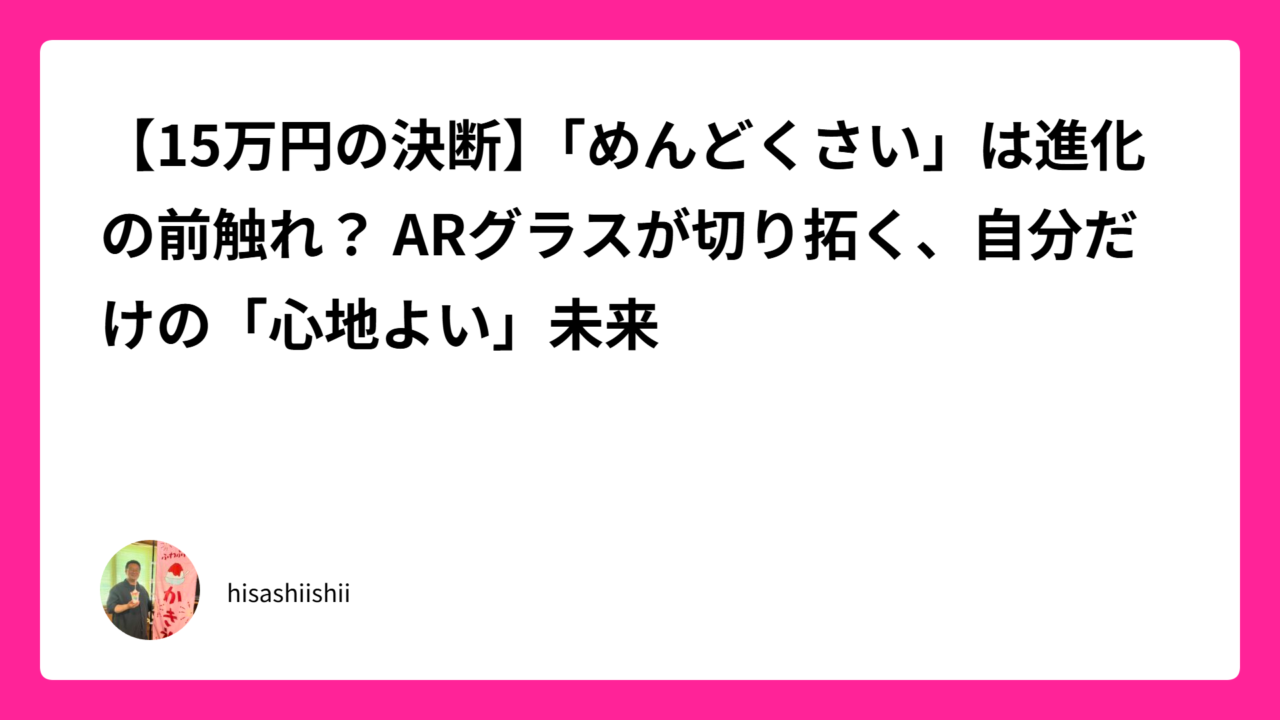 2. 「小さな未来」に先行投資する 日常がストレスでパンパンな時こそ、自分の専門領域や趣味を革新する「道具」に投資してみてください。今回私が選んだARグラスのように、**「今までのやり方を根本から変えてくれるもの」**は、単なる買い物以上の精神的な開放感を与えてくれます。